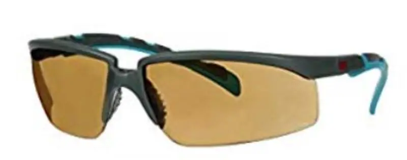 3M™ Solus™ 2000 met bruine PC lens en aanpasbare oorveren. De bril is verkrijgbaar met een Scotchguard (antikras en antidamp) coating. Lensmarkering: 5-2.5 1 FT KN.