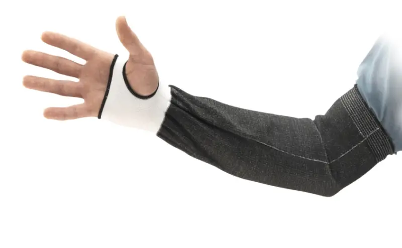Naadloze armbeschermer in HPPE met duimopening met elastiche manchette aan zowel onder-als bovenarm. Lengte 406 mm. Eigenschappen: armbeschermer met uitstekende snijbescherming. Ideaal te combineren met elke Hyflex handschoen met snijweerstand. Normen: EN 388 2.5.4.2