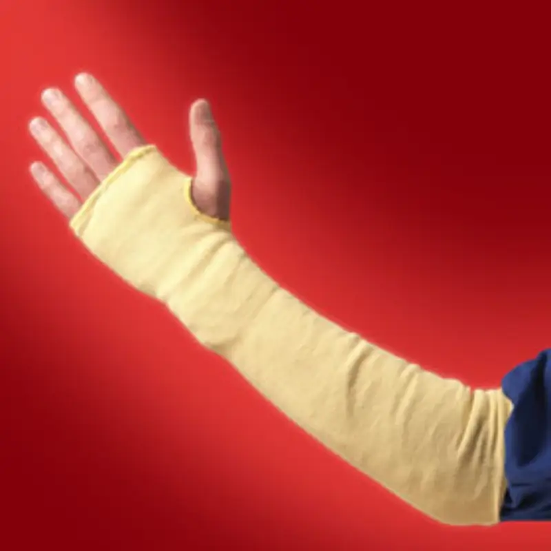 Armbeschermer van 100% Kevlar® para-aramide vezels. Uitzonderlijke snijweerstand in combinatie met een grote gevoeligheid. Het gebruik van 100% DuPont Kevlar® resulteert in een bijzonder gunstige verhouding tussen snijweerstand en gewicht. De duimversteviging verhoogt de bescherming van de polszone. Deze armbeschermens hebben duimversteviging die de bescherming van de polszone verhoogt. Lengte: 457mm.