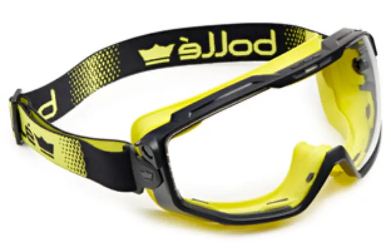 Goggle met breed panoramisch gezichtsveld, geventileerd, past over de meeste correctiebrillen. Met blanke polycarbonaatlens, voorzien van een antidamp en antikras coating. Voorzien van een verstelbare elastische band, zodat het zachte montuur goed aan het gezicht past.
