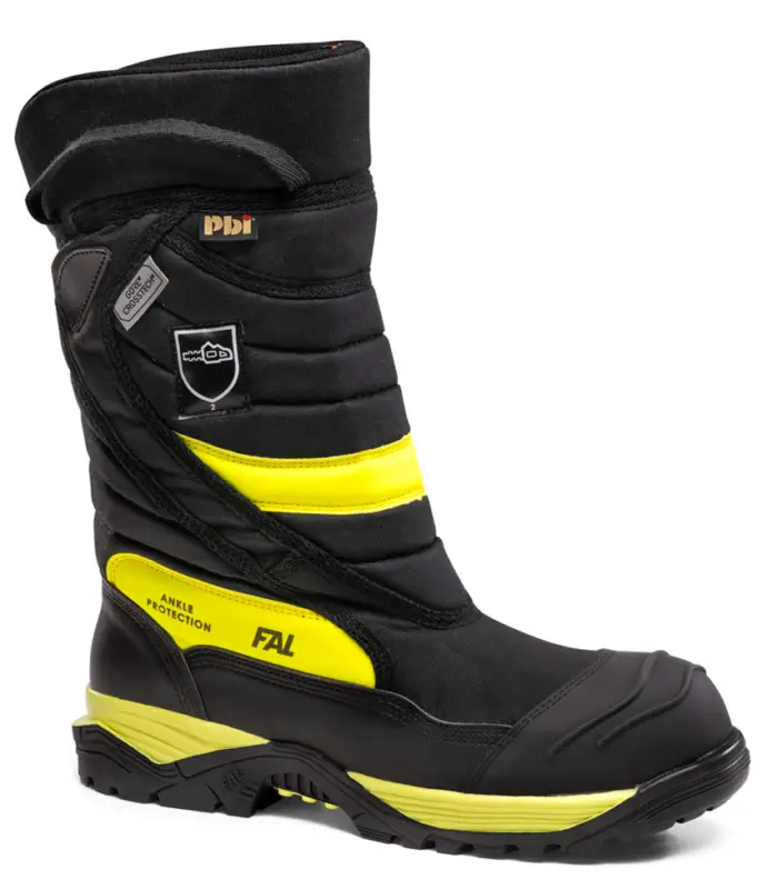 Brandweerlaars met kettingzaagbescherming (klasse 2) voor professioneel gebruik in zwart water –en vuurbestendig PBI en microfiber met 200J neus en antiperforatiezool in kunststof. Reflectoren aan beide zijden, AN enkelbescherming in kunststof. Flexie achteraan. Voering in Crosstech. Zool in rubber met een confortlaag in PU (ingebed). Overneus in rubber. Treklussen aan beide zijden in PBI. Maten : 35-50. Geschikt voor : brandweer.