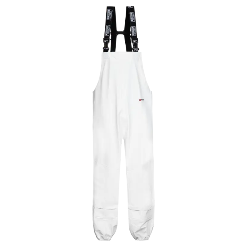 Bretelbroek geschikt voor de voedingsector met aanpasbare bretellen. Deze bretelbroek is water- en winddicht. Beschikbare maten: XS-4XL. Beschikbare kleuren: Blauw en wit.