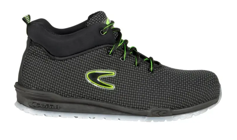 Lage schoen in zwart waterbestendig Techsell, met ademende voering in Sany-Dry. Voorzien van een synthetische anti-perforatiezool en aluminium 200J neus. Loopzool uit PU/TPU. Maten: 36-48.