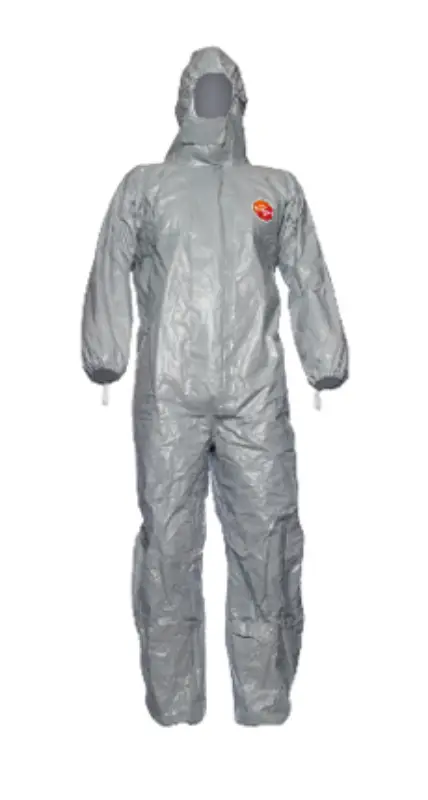 Overall, dubbele polymeer coating, extra chemiebestendige filmlaag, 100%partikeldicht, bestand tegen spatten van gevaarlijke vloeistoffen ( tot5 bar),vaste kap met elastiek, gestikte en dichtgeplakte naden ,elastiekaan polsen en enkels en in de taille, ritssluiting met zelfklevende dubbele overslag, duimlussen. Beschikbaar in oranje, grijs. Geschikt voor organische chemicaliën, geconcentreerde anorganische zuren, logen en zoutoplossingen, toepassingen in (petro)chemische bedrijven. In overeenstemming met: Type 3-4-5 en 6, EN1149-1, EN1073-2, EN14126 type 3B.