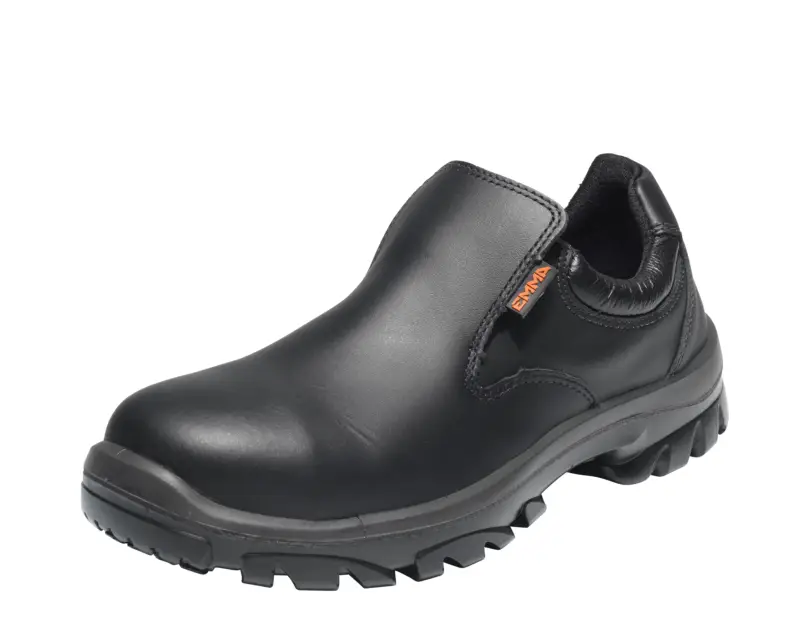Lage veiligheidsschoen S2 in zwart rundnerfleder met stalen neus. Zool in lichtgewicht PU/PU. Maten: D (35-48), XD (37-48).