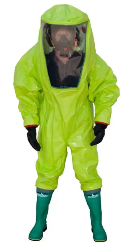 Gaspak in Tychem TK, de meest resistente grondstof voor wegwerppakken. Dit gaspak is voorzien van sokken en een rechte pijp als laarsovertrek. Dit pak heeft vervangbare handschoenen. Het persluchtapparaat dient binnenin het pak gedragen te worden. Geleverd in een stevige tas. Beschikbaar in: geel. Maten: S – XXL. Gewicht: 6 kg.