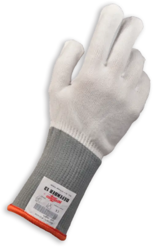 Defender 13 is dé oplossing tegen snijrisicos uitermate geschikt voor de voedingsindustrie. Tricot handschoenen zonder naden, die iets dunner zijn dan Defender 10, vervaardigd met Spectra® vezels alsook met polyester en roestvrij stalen vezels. Deze handschoenen kunnen ambidexter en onder maliënkolder handschoenen gedragen worden. Defender 13 is voedingsgekeurd. Beschikbaar in: wit/grijs. Maten: 7 / 8 / 9 / 10, blauwe manchet van 10 cm voor een betere detectie.