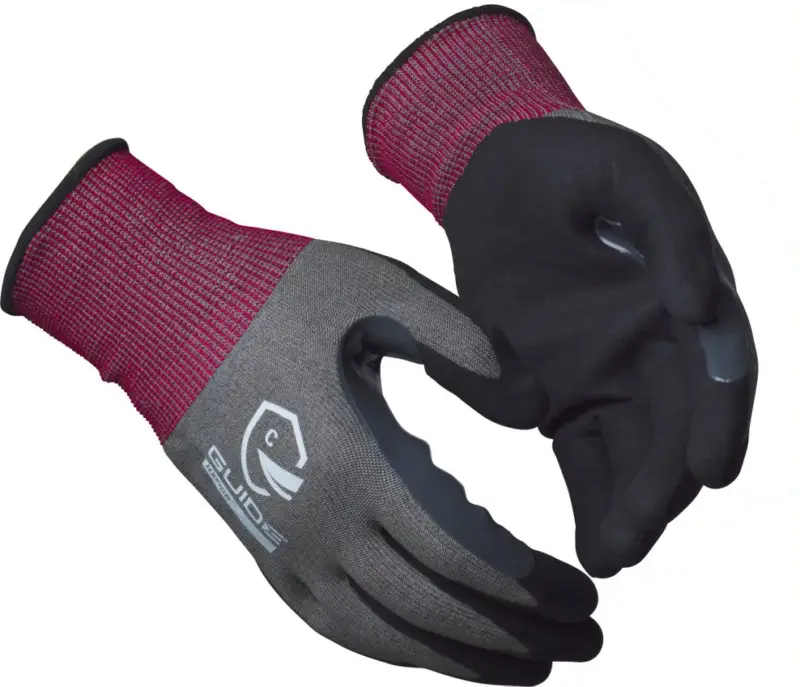 Snijbestendige naadloos gebreide handschoen in HXFIBR vezel (18 gauge) zonder glasvezel met een nitril coating voor goede grip in olie-achtige werkomgevingen. ESD en touchscreenfunctie, verlengde duimbescherming, strakke pasvorm en flexibele manchet. Voedingsgekeurd. Oeiko-Tex standaard 100, DMF vrij, bevat geen siliconen of natruulijk latex. Maten: 6-11.