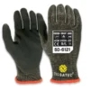 Handschoen gebreid in Zirnium® garen, handpalm en vingers bedekt met rundssplitleder, 1.1mm dikte, 25 cm lengte, naden gestikt met Kevlar® garen.