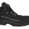 Hoge schoen New Borneo in hoog kwalitatief waterbestendig rundsnerfleder met Air Toe aluminium neus (geperforeerd) en niet metalen antiperforatiezool Safe & Flex Zero+. Zool in PU/PU met een perfecte grip en zelfreinigend profiel, lichtgewicht, oliebestendig en antistatisch. Energieopname in de hak. Voering in 3D materiaal, met een vochtregulerende celstructuur. Uitneembare en ergonomisch gevormde inlegzool in polyethyleen/EVA met een textiel laagje voor een beter comfort. Ruime matenreeks en verbeterde schacht. Maten: 36-47.