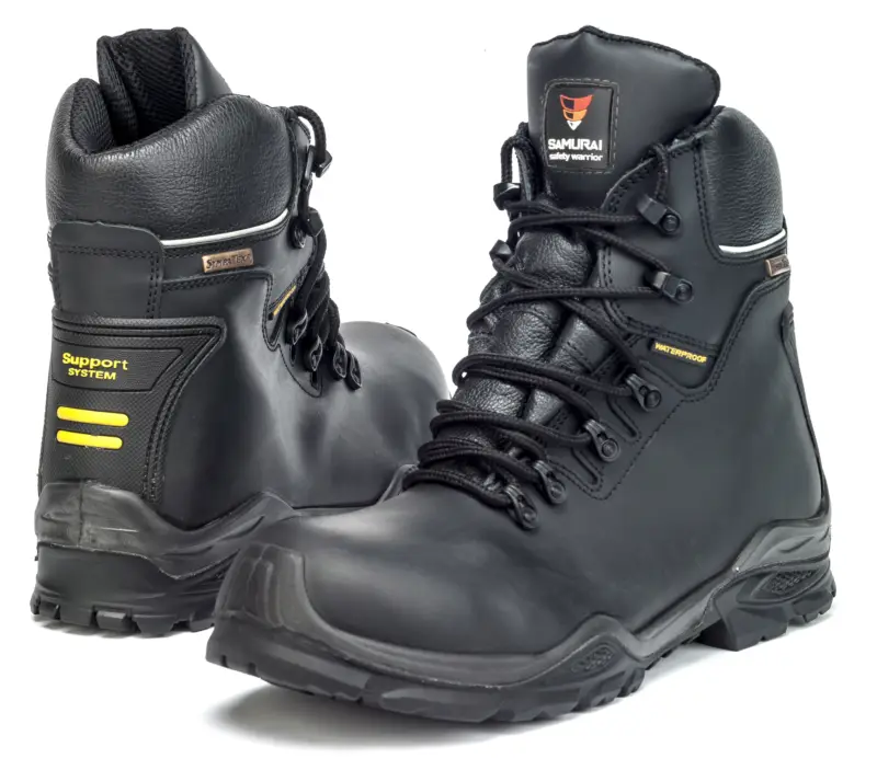 Hoge zwarte metaalvrije veiligheidsschoen S3 WR HRO HI CI SRC met kunststof neus, licht oplopende kruipneus, een niet metalen antiperforatiezool, uitgevoerd in volnerf rundsleder. Deze schoen is voorzien van een watertong én een vochtregulerend Sympatex membraam, wat waterdichtheid garandeert langs de buitenkant, maar ook dat het zweet door alle voeringslagen naar buiten wordt gevoerd. Deze schoen is evenzeer temperatuurregulerend en biedt de nodige hitte- & koude- isolatie. De schoen is voorzien van een kwalitatieve inlegzool met schok dempende werking en overtrokken met textiel. Verder werd deze schoen uitgevoerd met een hoogwaardige Vibram®-zool, die buiten zijn hittebestendigheid, hoge slijtvastheid en antislipwaarden ook een prima stabiliteit biedt, dankzij zijn breed loopoppervlak. Maten: 38-47.