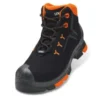Hoge schoen S3 in zwart/grijs waterbestendig veloursleder, voorzien van een synthetische antiperforatiezool en kunstof 200J neus. Koude isolerende voering in non-gewoven textiel met goede ademendheid en abrasiebestendigheid. Zool uit PU/PU, met sterke antislip, schokabsorptie en oplopende zool. Anatomische inlegzool uit PU mousse, bestand tegen abrasie. Maten: 38-48.