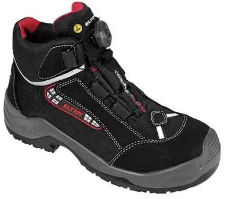 Hoge schoen in zwart gehydrofobeerd Cordura microvezel, met een niet metalen antiperforatiezool, gepolsterde watertong en een aluminium 200J neus. Voorzien van een ademende voering in textiel. Zool in PU/PU, SRC antislip. Semi-othopedische inlegzool die voldoet aan ESD normering. ESD gekeurd. Maten: 38-48.