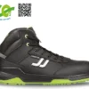 Hoge schoen Till ESD in zwart rundsnerfleder, voorzien van stalen neus en antiperforatiezool. Voering in synthetisch materiaal, binnenzool met fleece overtrokken (ESD). Zool in PU/Rubber, bestand tegen olieën en vetten. Schoen voorzien van een overneus. Maten: 36-48.