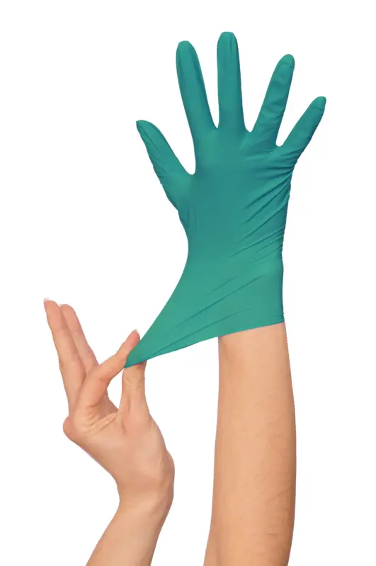 Donkergroene wegwerphandschoenen in nitril. Het profiel garandeert een uitstekende grip in droge of vochtige omstandigheden. Ongepoederd. Gewicht (maat M): 6,0 gr / Dikte: 0.12-0.17. Toepassingen: Licht chemische werkzaamheden in labo’s, assemblage, productcontrole, voedingssector. Getest voor contact met voedingsmiddelen (10/2011). Beschikbare maten: S-XL. In overeenstemming met: EN 374-1 Type B (JKTP) en EN374-5: VIRUS