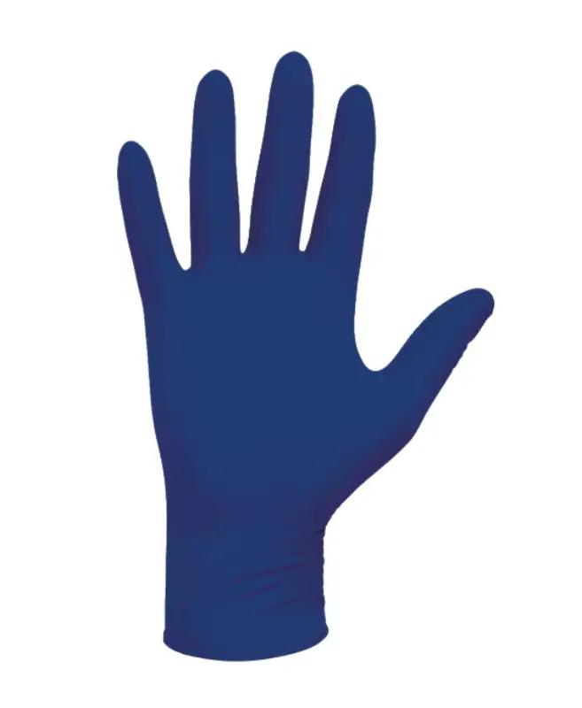 Marine blauwe nitril handschoen voor eenmalig gebruik Poedervrij en vrij van versnellers. Ambidexter, met geruwde vingertoppen. Ontworpen voor gebruik in laboratoria en onderzoeksomgevingen.