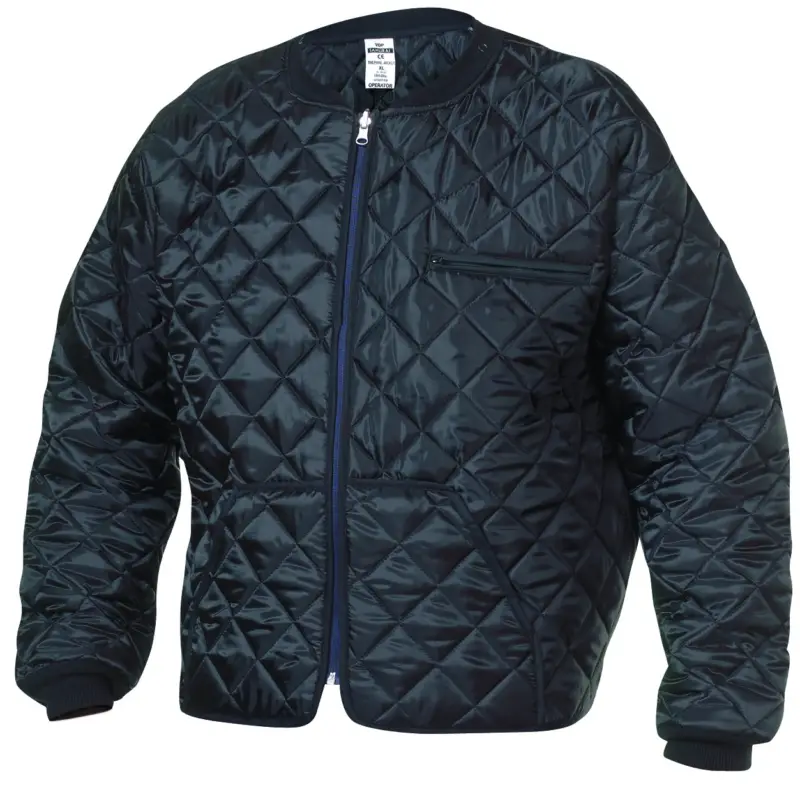 Koude-isolerende tussenkleding ingewatteerde nylon, twee opgezette zakken, één ingezette borstzak,ritssluiting. Deze thermische voering met mouwen wordt afzonderlijkgedragen boven de werkkleding of ingeritst in de parka Operator. Beschikbaar in: zwart. Maten: S – XXXL.