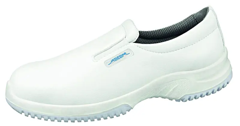 Lage schoen in wit A microfiber, met een metalen 200J neus. Zool in PU/TPU, SRC antislip, bestand tegen oliën en zuren. Uitneembare Sanitized inlegzool in polyurethaan met textiel laag. Maten: 35-48.