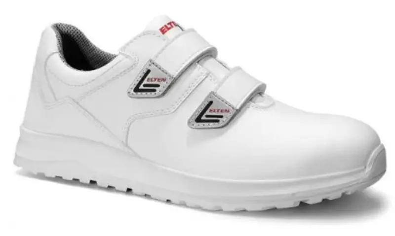 Lage schoen in gehydrofobeerd microfiber, met een stalen 200J neus. Voorzien van een ademende, abrasiebestendige voering in textiel. Met velcrosluiting en een kruipneus. Zool in PU/Nitril, SRC antislip, bestand tegen oliën en zuren. Uitneembare inlegzool in polyurethaan met textiel laag. ESD gekeurd. Maten: 35-48.
