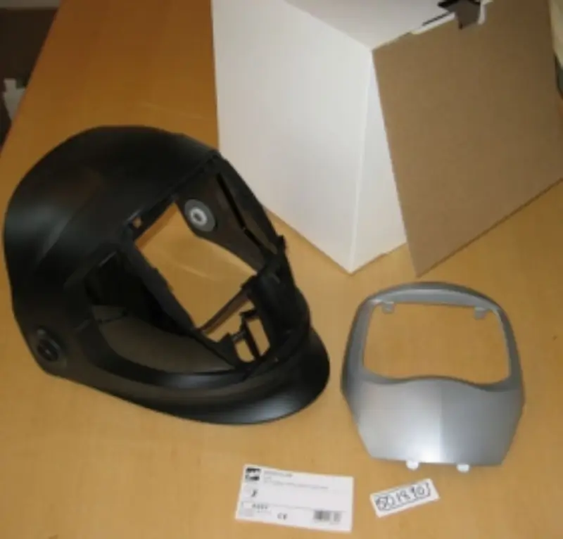 Automatische lashelm met sidewindows uit de 9100 serie in duurzaam, lichtgewicht materiaal. Goede bescherming van oren en zijkant ne k, en betere bedekking van de hals tegen hitte en lasvonken. Geleverd zonder cassette noch hoofband.