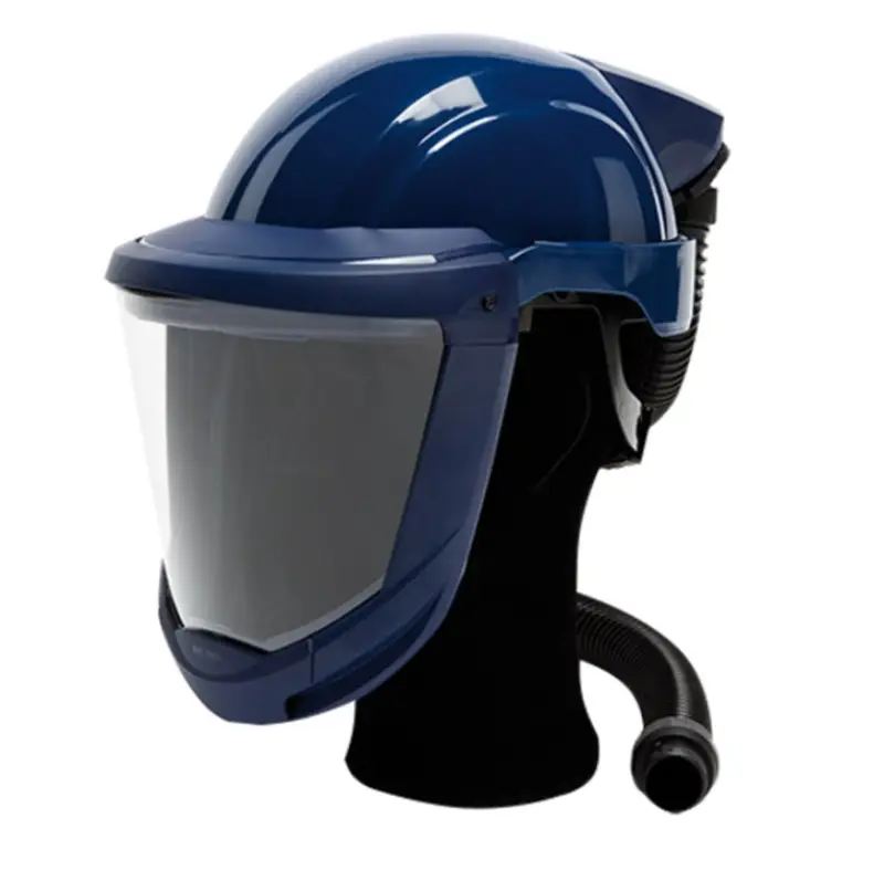 Luchtkap in de vorm van een weiligheidshelm met opklapbaar PC vizier, voor aansluiting op Sundström motorunits SR500 /SR700. Luchtkanaal leidt naar het vizier om beslaan van het vizier te vermijden. Vizier makkelijk op te klappen en hoofharnas is aanpasbaar luchtslang kan vervangen worden. Voor werken met risico op mechanische impact. Gewicht: 700 gr. NPF: 500.