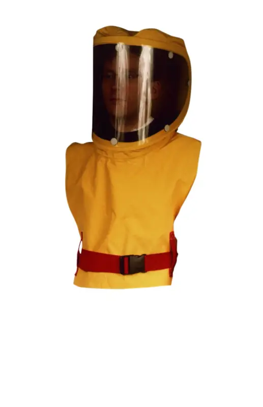 Comfortabele hoofdkap in neopreen met een panoramische PVC-ruit. Het benodigde debiet van het persluchtnet bedraagt tussen 220 en 28 0 l/m. Door middel van een auditief alarmsignaal wordt drukdaling gesignaleerd. De kap steunt op de schouders, zodat het hoofd vrij kan bewegen. Beschikbaar in: geel. Maten: universeel.