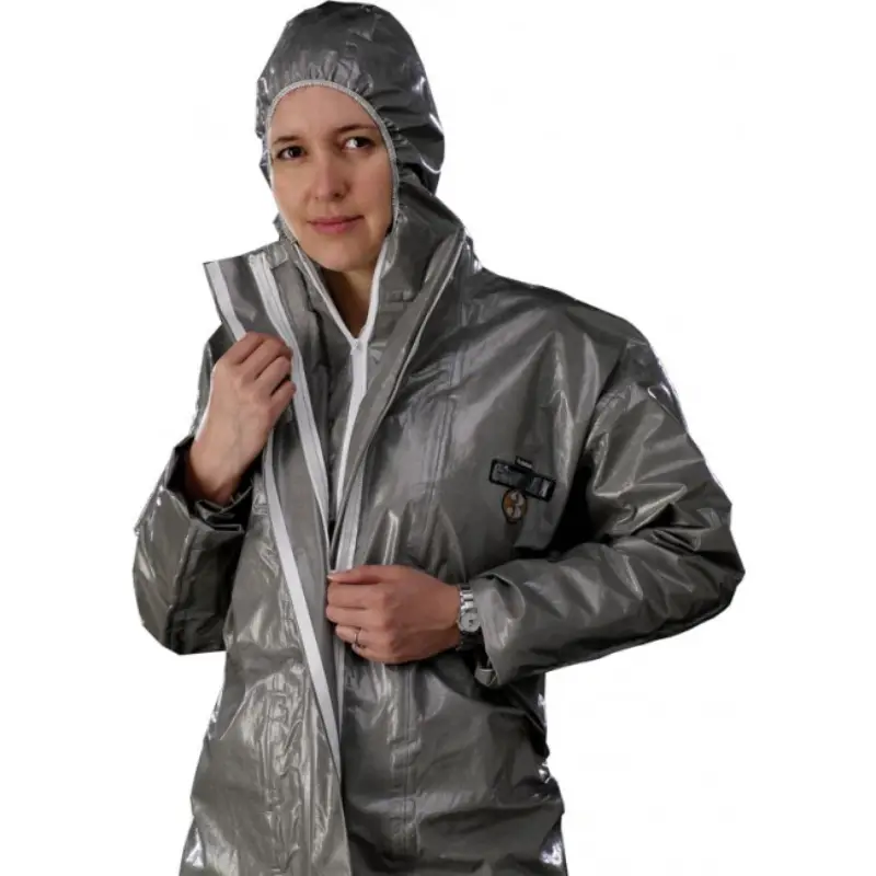 Overall, gelamineerd, chemisch bestendig, beperkt gebruik, verschillendecomposietlagen waaronder de excellent beschermende EVOH- laag. Beschermt tegen nevels en vloeistoffen van gevaarlijke chemicaliën. Grijze versie, gestikte en getapete naden, 2 maal rits onder pad, kap, elastieken terhoogte van polsen en enkels versterkte kniestukken. Geschikt voor (petro)chemie, farmaceutische nijverheid, afvalophaling en – verwerking, reinigen van tanks, interventiediensten, alle activiteiten waar bescherming vereist is tegen gevaarlijke chemicaliën en afvalstoffen. Maten: S – XXXL. In overeenstemming met: EN 14605 (type 4), EN 14065 (type 3), EN 1149-1, EN14126 en EN1073.