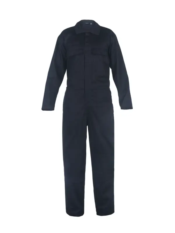 Overall Industrie vlamvertragend behandeld katoen: – Verborgen knoopsluiting middenvoor – Borstzakken met enkele laag met veiligheidsvest en knoopsluiting – Schuine zijzakken – Zijkanten met veiligheidsvest en knoopsluiting, achter zijzakken – Kniestukzakken – Verstelbare tailleband voor verbeterde ergonomie en ultiem comfort – Rugzak met enkele laag met veiligheidsvest en knoopsluiting op RHS – Gereedschapszak met enkele laag op RHS-poot Kwaliteit: 60% katoen / 39% polyester / 1% AST, 360 g / m². Beschikbare maten: 48-66. Beschikbare kleuren: Navy. Voldoet aan: EN 1149-5, EN ISO 14116, EN ISO 11611 klasse 1 en ISO 11612 A1B1C1E1F1.