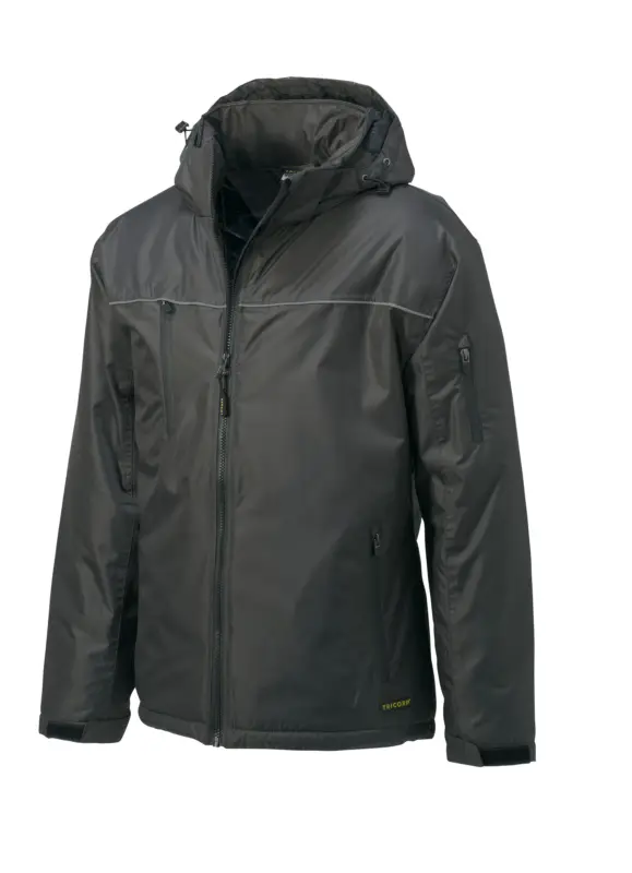 Lichtgewicht parka in 100% polyester met PU coating (160g/m²). Blokrits met stormflap aan achterzijde, volledig gewatteerde voering, afritsbare capuchon, reflecterende piping, 4 buitenzakken met waterafstotende ritsen, 2 binnenzakken voor GSM, mp3,… en ID-badge, verstelbare manchetten met velcro en windvangers. Beschikbare maten: XXS-7XL. Beschikbare kleuren: navy, zwart, donkergrijs.
