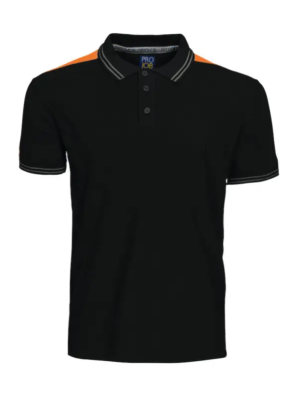 Polo piqué met drieknoopsluiting, ribboord aan de kraag en manchetten, fluorescerend materiaal op het schouderstuk. Kwaliteit: 65% polyester, 35% katoen, 200 g/m². Beschikbare maten: XS-4XL. Beschikbare kleuren: Marine/fluo gele en zwart/fluo oranje.