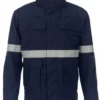Vlamvertragende softshell Umia met ARC-bescherming: Rechte kraag; Ritssluiting onder klep; 1 opgezette borstzak met klep; 2 ingezette zakken; 1 lus voor gasdetector; 1 lus voor badge; 1 Napoleonzak; Ronde mouwen; Mouwvernauwing door klittenbandsluiting. Kwaliteit: polyester + ademend FR PU + inherent FR fleece + AST; ± 350 g / m². Beschikbare maten: S-3XL. Beschikbare kleuren: Navy / fluo geel. In overeenstemming met: IEC 61482-2: 2018 APC1 – ATPV 24,3 cal / cm², EN ISO 11612: 2015 / A1 B1 C2 F1, EN ISO 14116: 2015 / IND.3, EN ISO 11611: 2015 / Klasse 2 – A1, EN 1149-5: 2018, EN 13034: 2005 + A1: 2009 Type PB [6] en EN 14058: 2017 / Klasse 1 3.