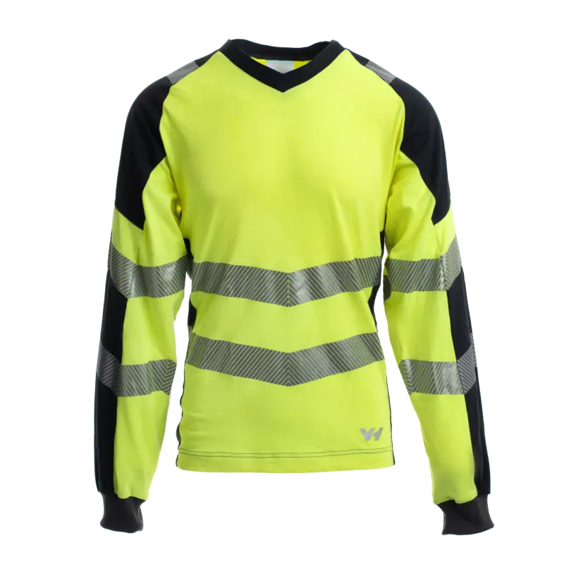 Multinorm T-shirt Diablo: – Lange mouwen; – V-kraag in contrast; – Raglan mouwen; – 2 schuine schuine ref-banden. Kwaliteit: 63% FR VISCOSE -32% NOMEX – 5% ELASTANE. Beschikbare maten: XS-3XL. Beschikbare kleuren: Fluo geel/grijs.