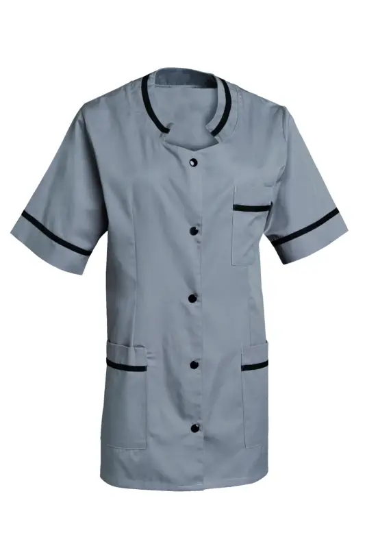 Tuniek, polyester/katoen, 195 gr./m², hoogte 80 cm en korte mouwen. Beschikbare maten: 0-6. Beschikbare kleuren: Marine, wijn en zinc.