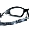 Klassieke beschermbril met vervangbare lenzen en zachte oorveren (DCT), regelbaar in lengte. Voorzien van zijkapjes. Uitgevoerd met lens in mineraal glas (HG): bestand tegen krassen en chemicaliën, zeer beperkte mechanische weerstand (12m/sec).